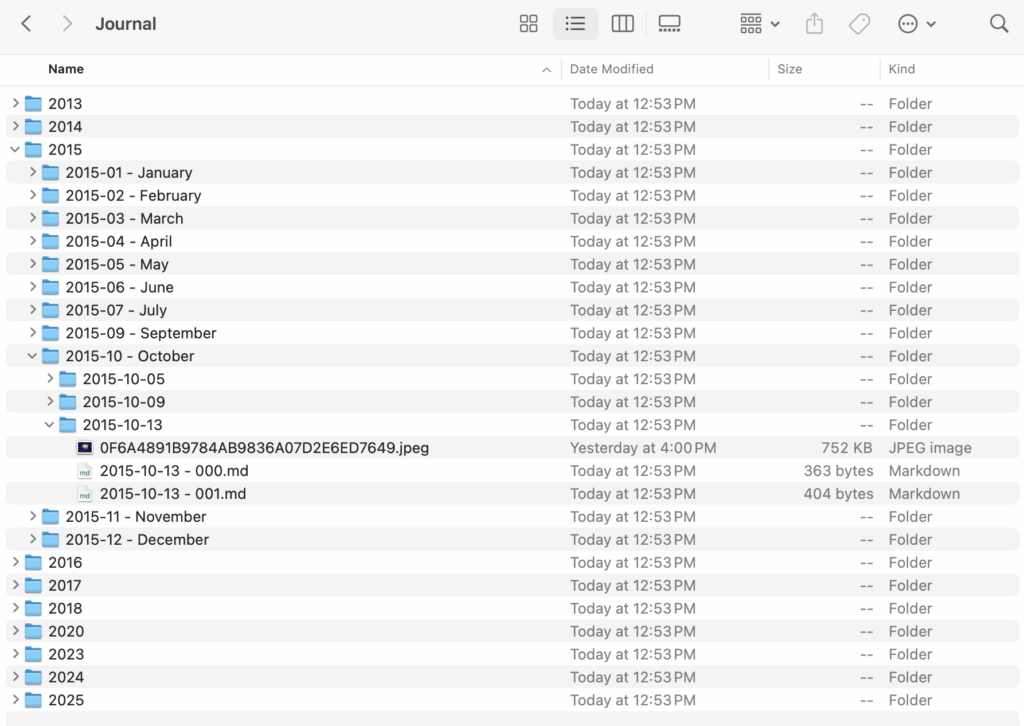 I recently moved away from Day One and am now using Obsidian to keep my daily journal. To make that possible, I needed to migrate over a decade’s worth of journal entries into an Obsidian-friendly format.